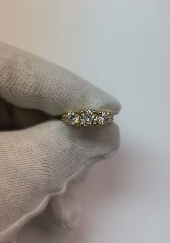Stein Spezifikationen : In der Mitte befindet sich ein Diamant von ca. 0,75 Karat, zwei Diamanten an den Seiten von ca. je 0,50 Karat und ca. 1,00 Karat kleinere Diamanten am Schaft. Diamanten aus natürlicher Erde.