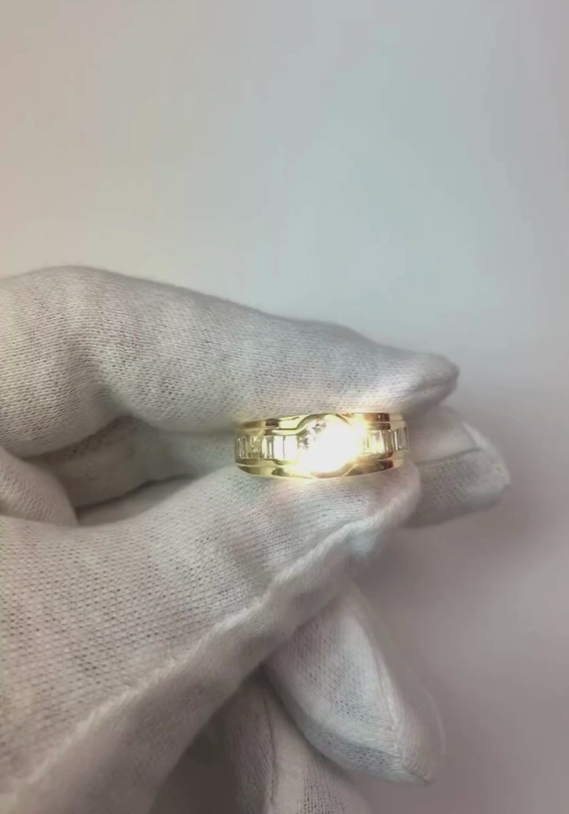 Steinspezifikationen: Es gibt einen runden Diamanten in der Mitte von ca. 1 Karat & ca. 1 Karat kleinere Baguettes auf dem Schenkel. Natürliche Diamanten aus Erdminen.