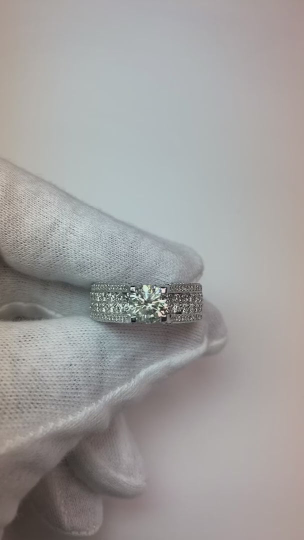 Details zum Stein: In der Mitte befindet sich ein runder Diamant von ca. 1.25 Karat (ca. 6.7 mm) und ca. 2.75 Karat kleinere Diamanten an der Seite. Natürliche Diamanten aus Erdminen.