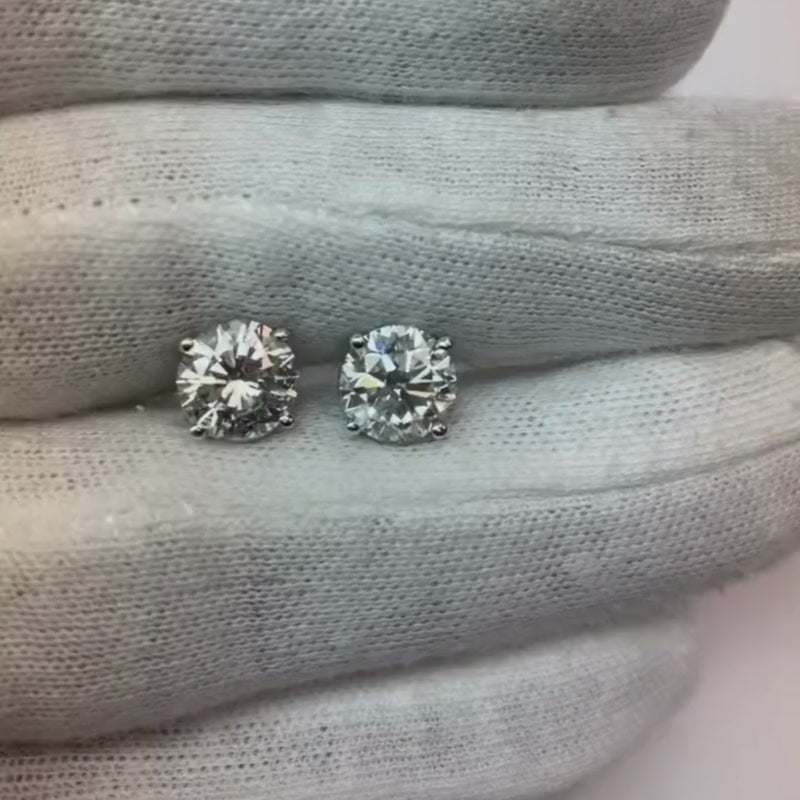 4 Karat Runden Funkelnde Diamanten Damen Ohrstecker Weißgold 14K