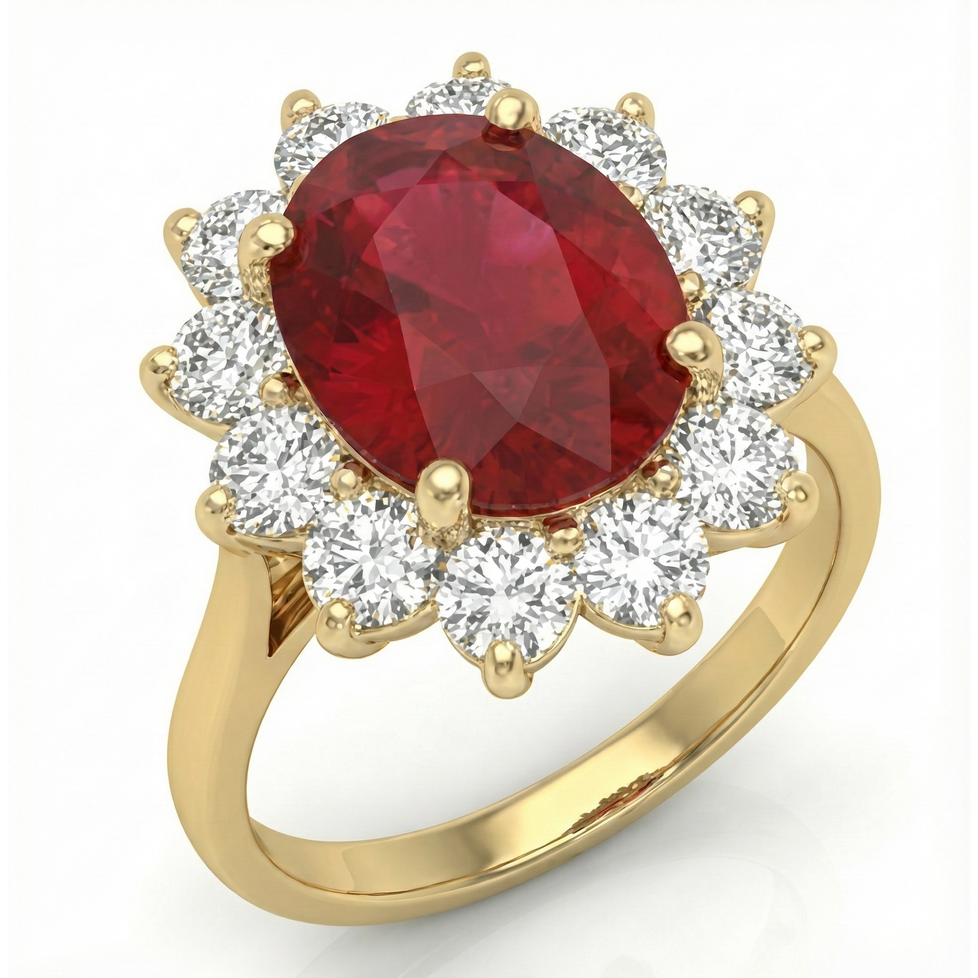 5 Kt Roter Rubin Diamant Ehering 14K Gelbgold