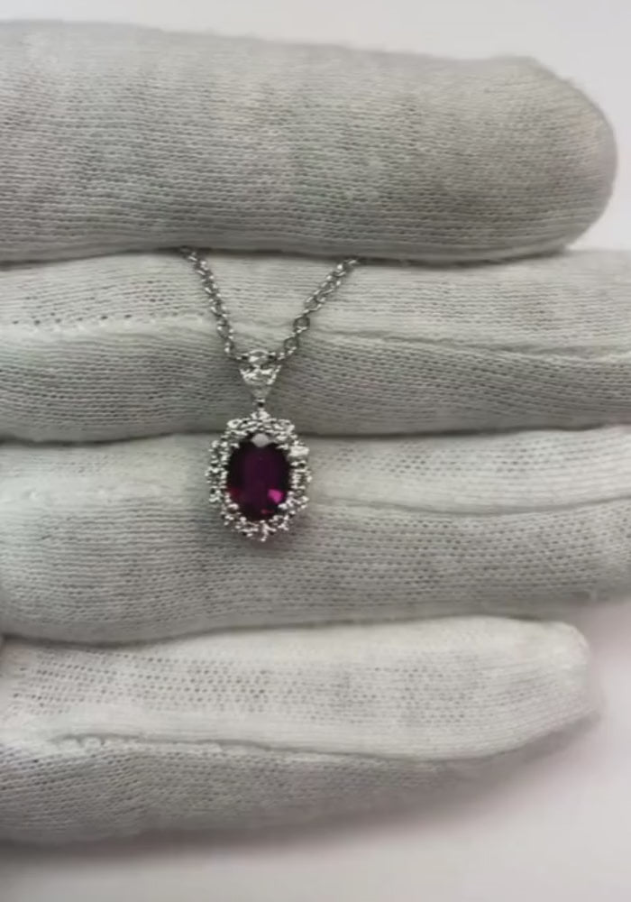 Details zum Stein: Es gibt einen ovalen roten Rubin von ca. 1,35 Karat (ca. Größe 7 x 5 mm), ein Tropfendiamant ca. 0,23 Karat (ca. Größe 5 x 3 mm) mit ca. 0,54 Karat kleinere runde Diamanten an den Seiten. Natürliche Erde abgebaute Steine.