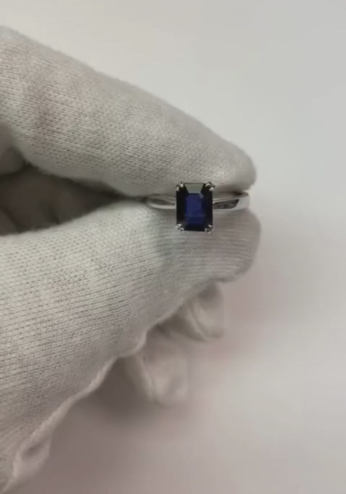 Steindetails: Es gibt einen Saphir im Smaragdschliff ca. 2 Karat (ca. Größe 8 x 6 mm). Aus natürlicher Erde gewonnener Stein.