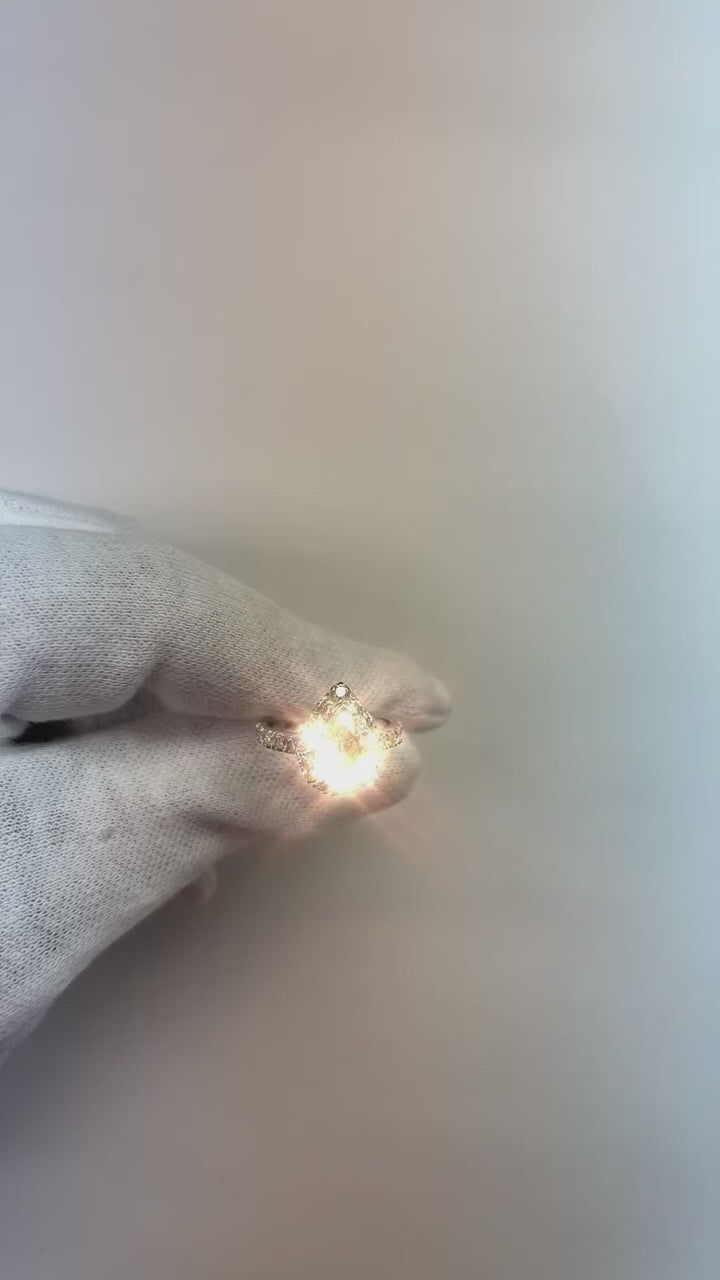 Steindetails: Es gibt einen Diamanten im mittleren Birnenschliff von ca. 1,50 Karat (ca. Größe 8,8 x 5,8 mm) und kleinere runde Diamanten an den Seiten ca. 1,25 Karat. Diamanten aus natürlicher Erde.