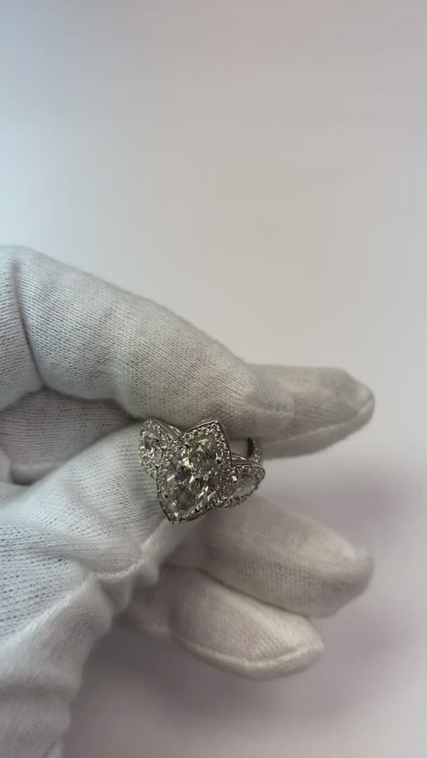 Halo Ring 3 Steinen Mit Birnen Und Marquise Natürliche Diamanten 7,45 Karat