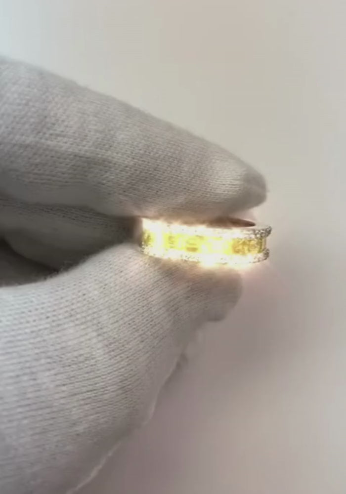 Kanariengelber Diamant im Smaragdschliff & Rundes Goldband 3,25 Karat