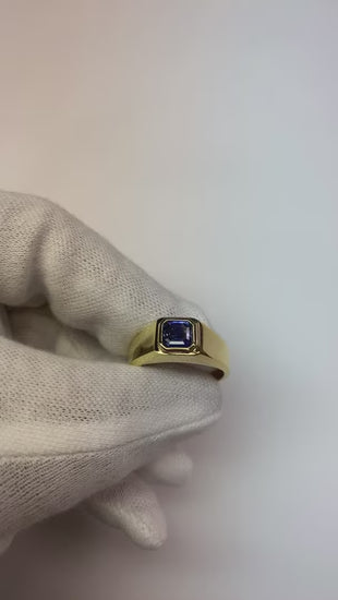 Radiant Solitaire Herrenring Gold Ceylon Saphir Dicker Schaft 1 Karat